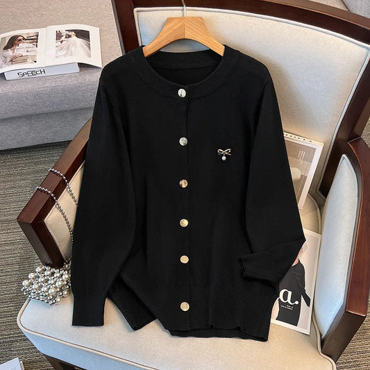 170Kg Plus Size Women's Bust 160 Spring Autumn Loose Cardigan Sweater Knitted Jacket Black Dark Gray 4XL 5XL 6XL 7XL 8XL 9XL