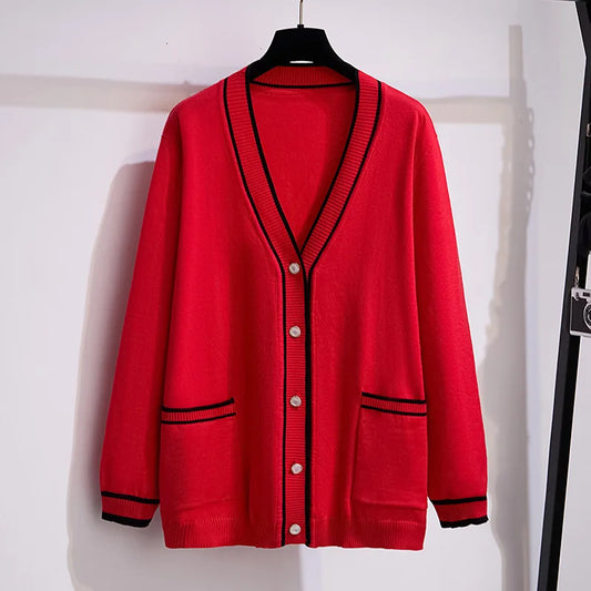 170Kg Plus Size Women's Bust 160 Autumn Loose V-Neck Cardigan Sweater Knitted Small Fragrant Style Jacket 5XL 6XL 7XL 8XL 9XL