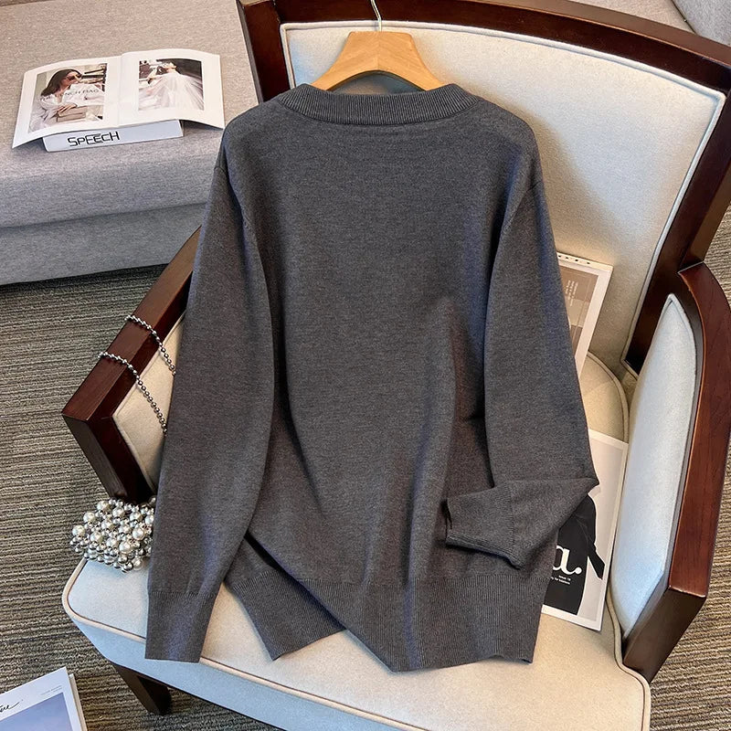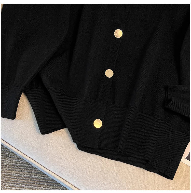 170Kg Plus Size Women's Bust 160 Spring Autumn Loose Cardigan Sweater Knitted Jacket Black Dark Gray 4XL 5XL 6XL 7XL 8XL 9XL