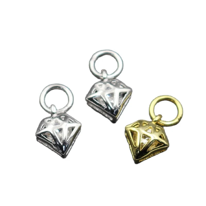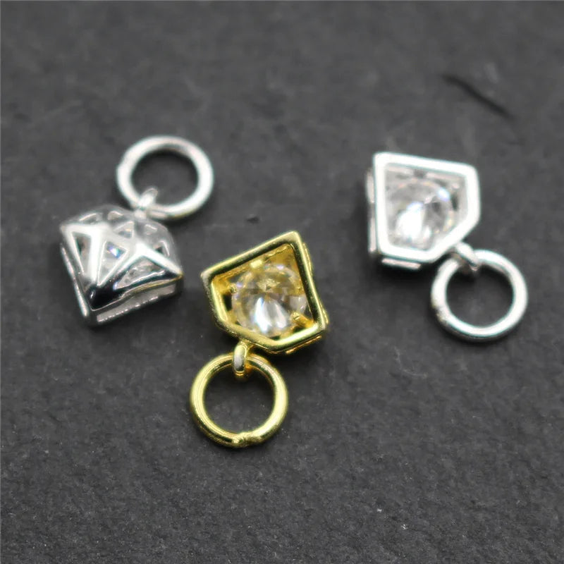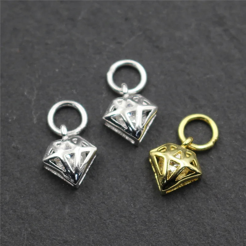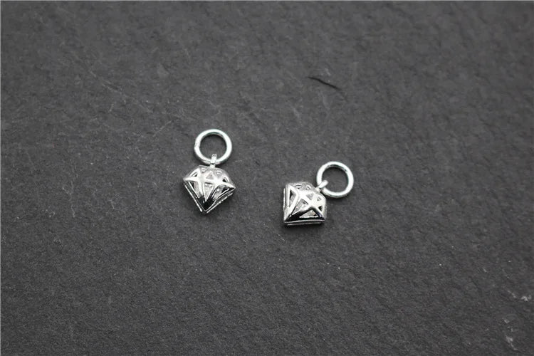 1pc/Lot 925 Sterling Silver Diamond Design Necklace Charms 8.5x7.5mm Earrings Bracelets Metal Pendants DIY Fine Jewelry Findings