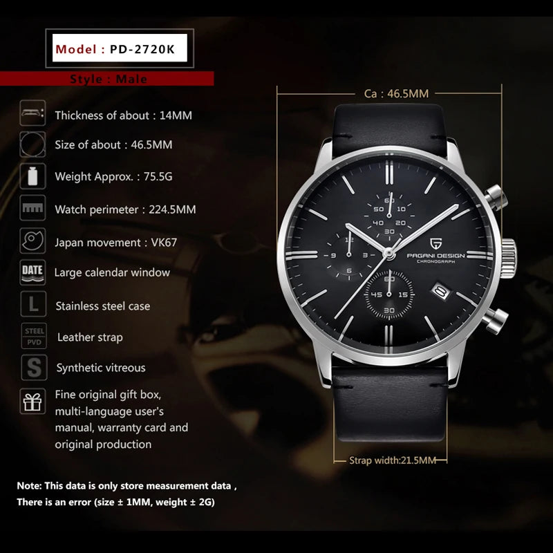 2024 New PAGANI DESIGN Brand Luxury Watches For Men Automatic Date Watch Waterproof Chronograph VK67 Movement Relogio Masculino