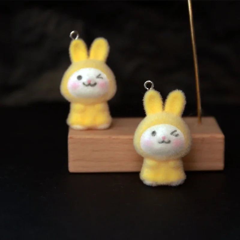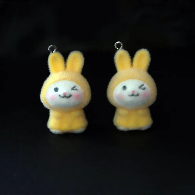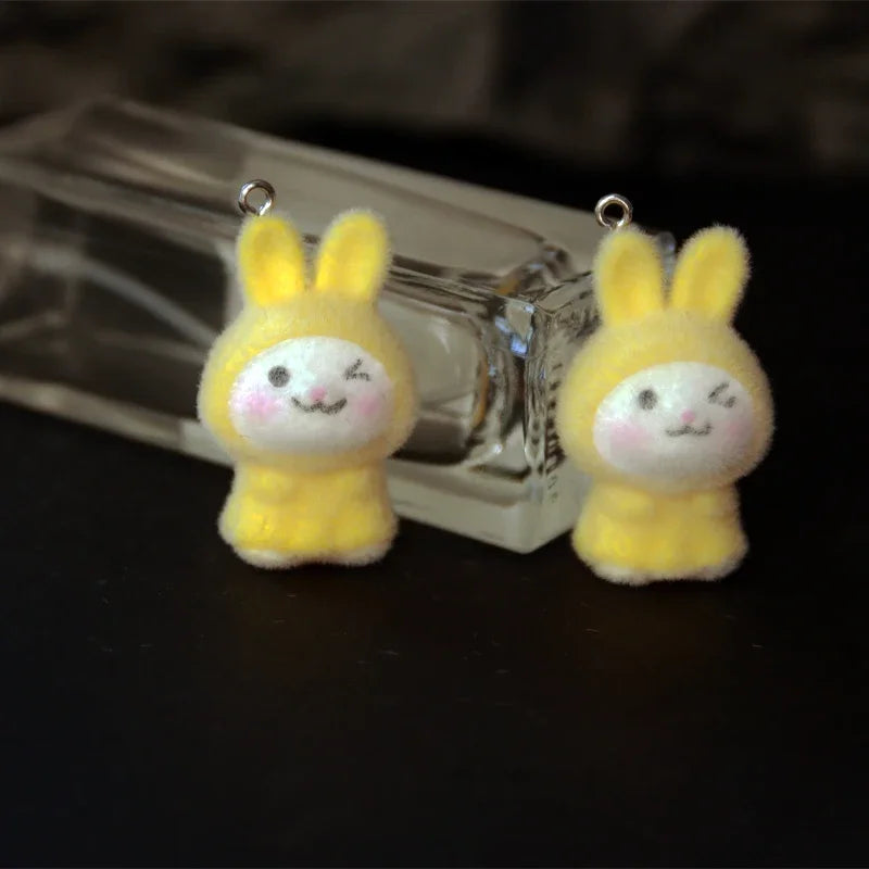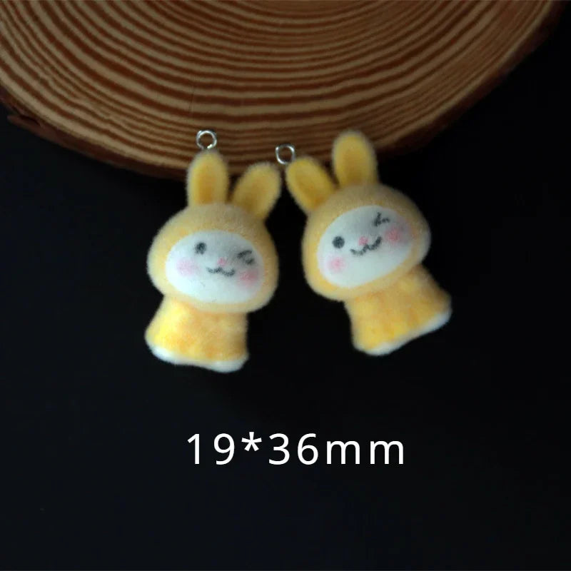 30Pcs 3D Kawaii Flocked Rabbit Charms Cartoon Animal Resin Pendant Earrings Keychains Accessories for DIY Crafts Jewelry Make