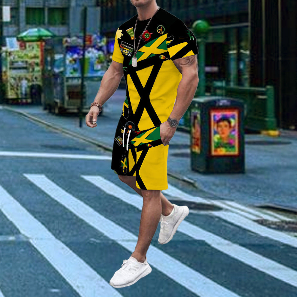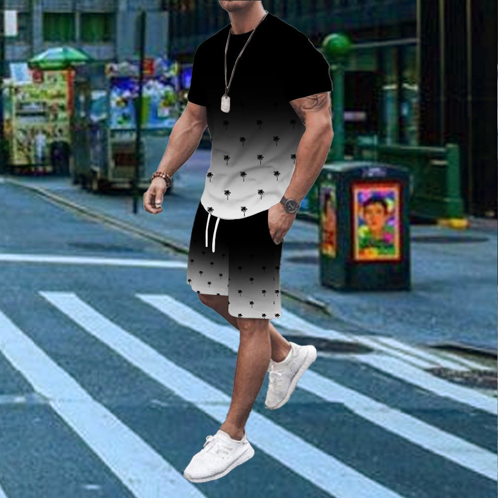 3D Digital Thermal Transfer Men's American T-shirt Suit