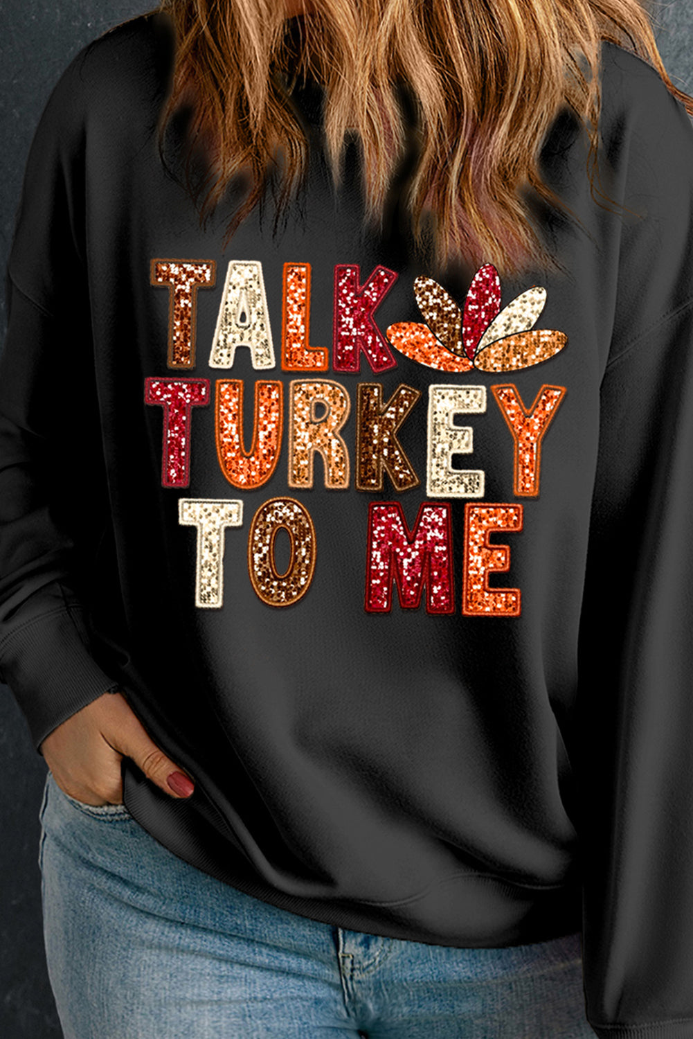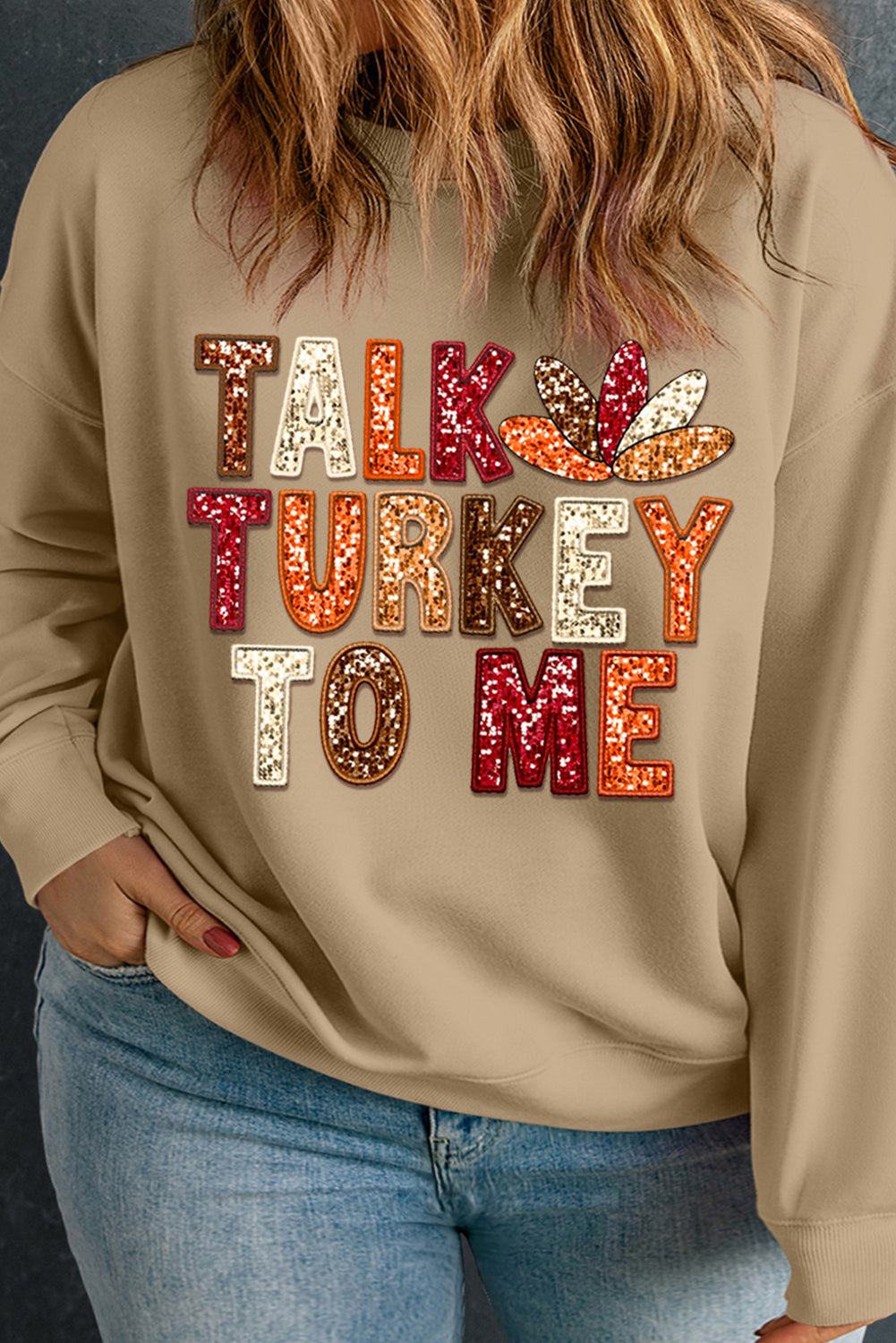 - Get cozy in the apricot "Talk Turkey To Me" sweatshirt, a playful design perfect for everyday wear.
