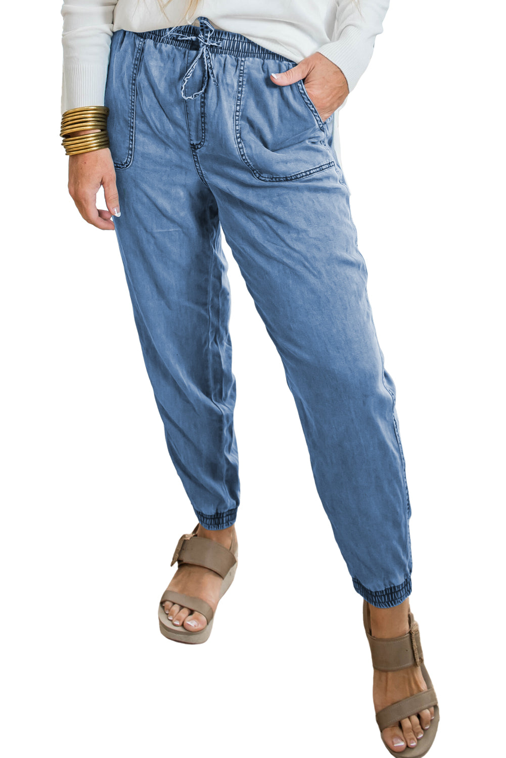 Dusk Blue Drawstring Waist Pocketed Plus Size Denim Joggers