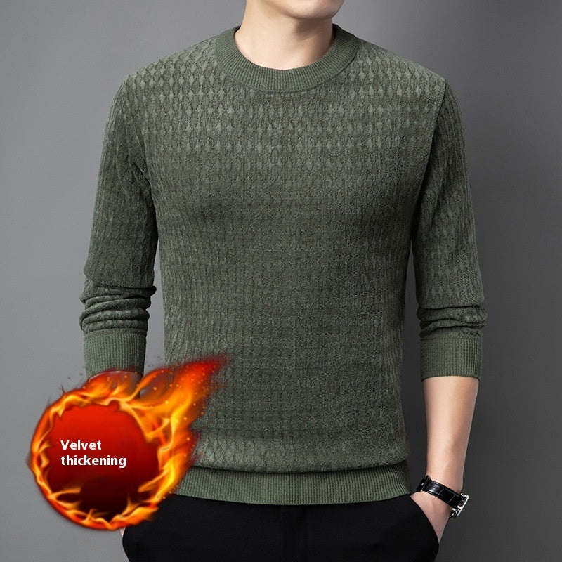 Men's Round Neck European Cotton Velvet Sweater Casual