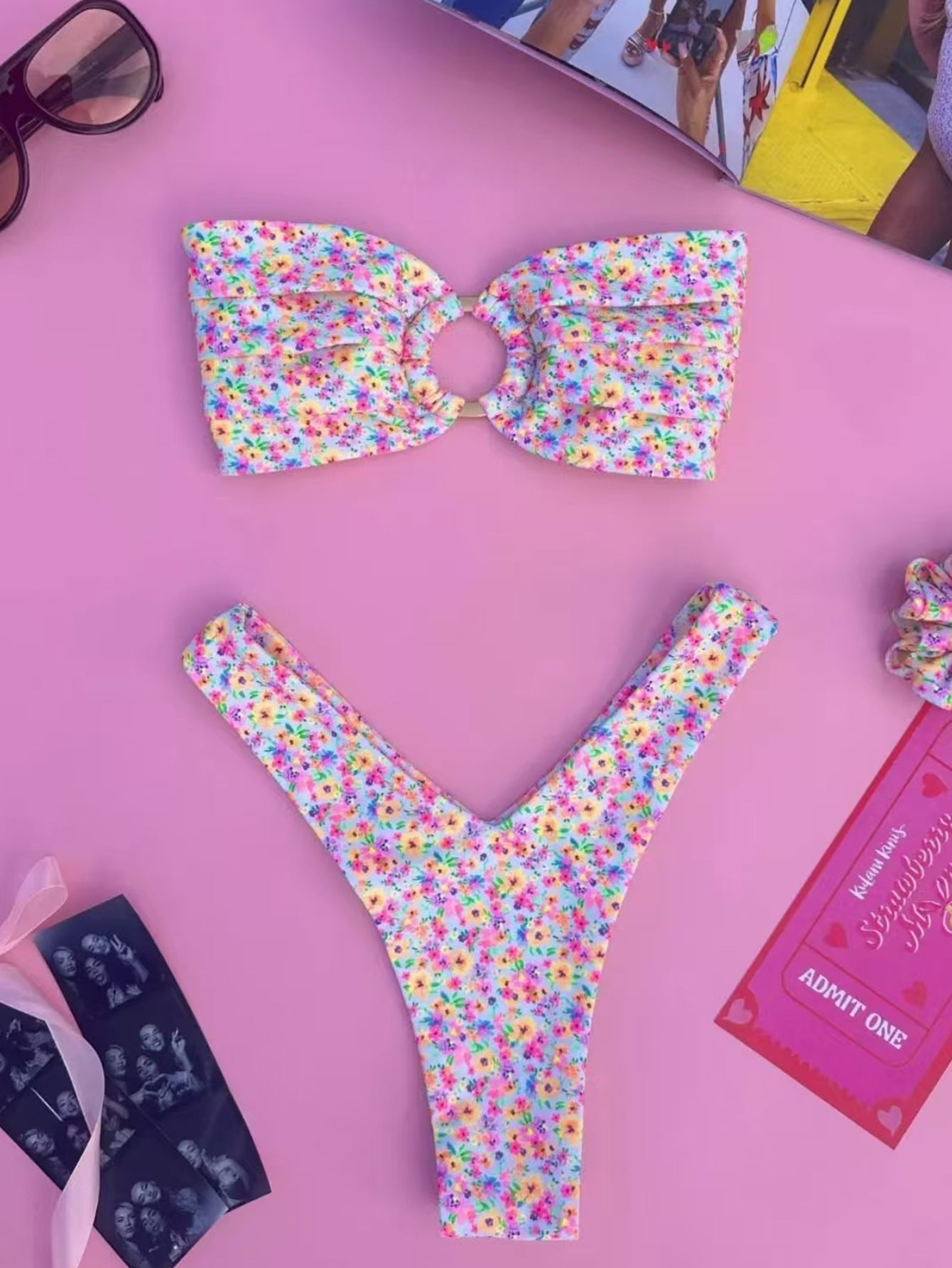 New-style Ring Pleated Digital Printing Split Swimsuit