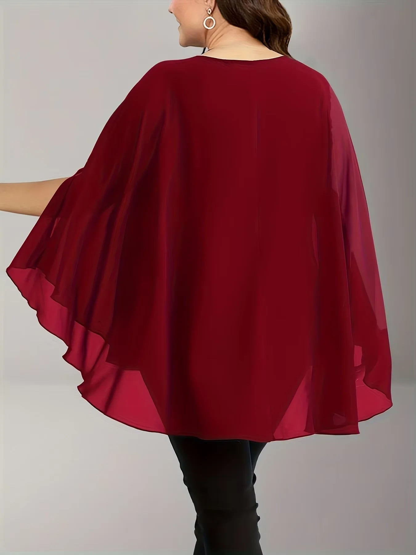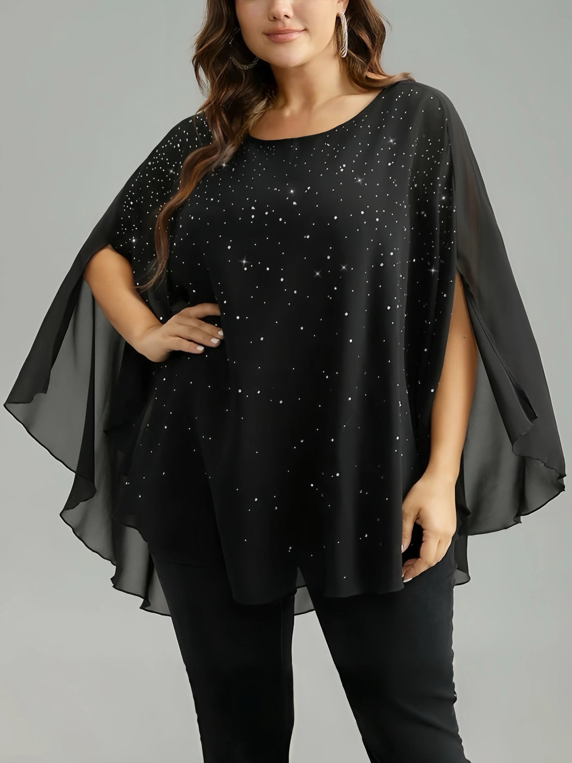 Plus Size Elegant Chiffon Crewneck Sequined Slit Sleeve Tops Office Lady Casual Vintage Summer T shirts for Women 2025 Tee Tops