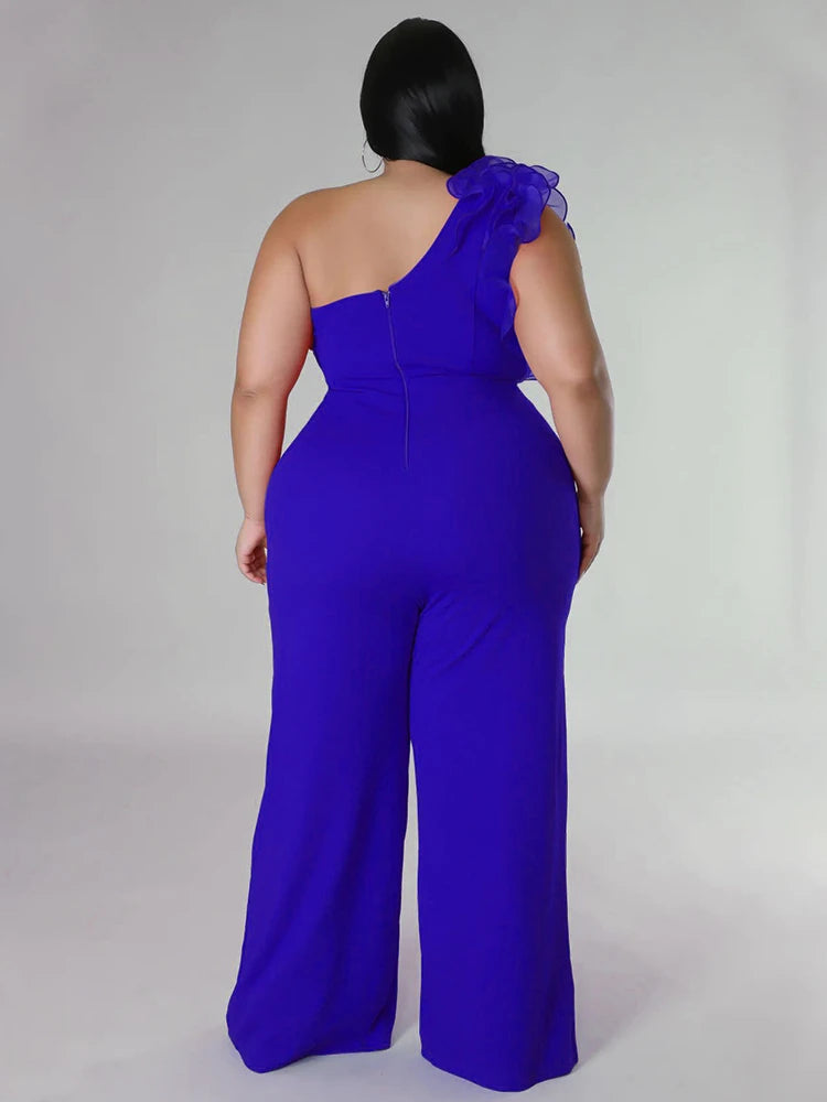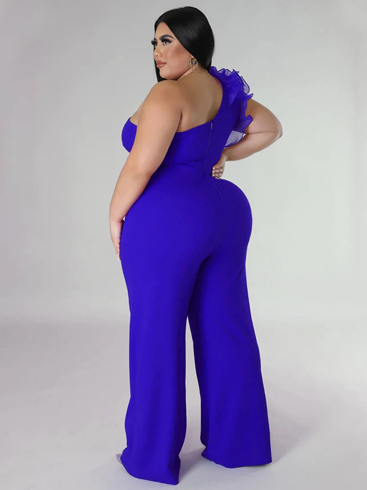 Plus Size Jumpsuits One Shoulder High Waist Ruffles Evening Party Overalls Wide Leg Pants 3XL 4XL One Piece Outfits for Women
