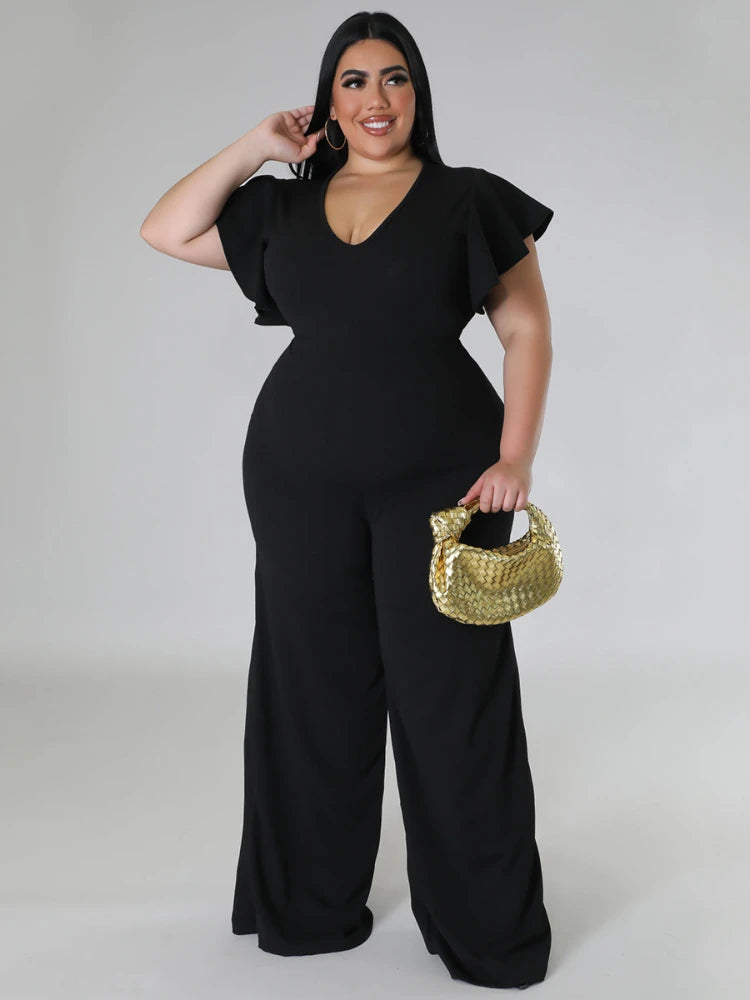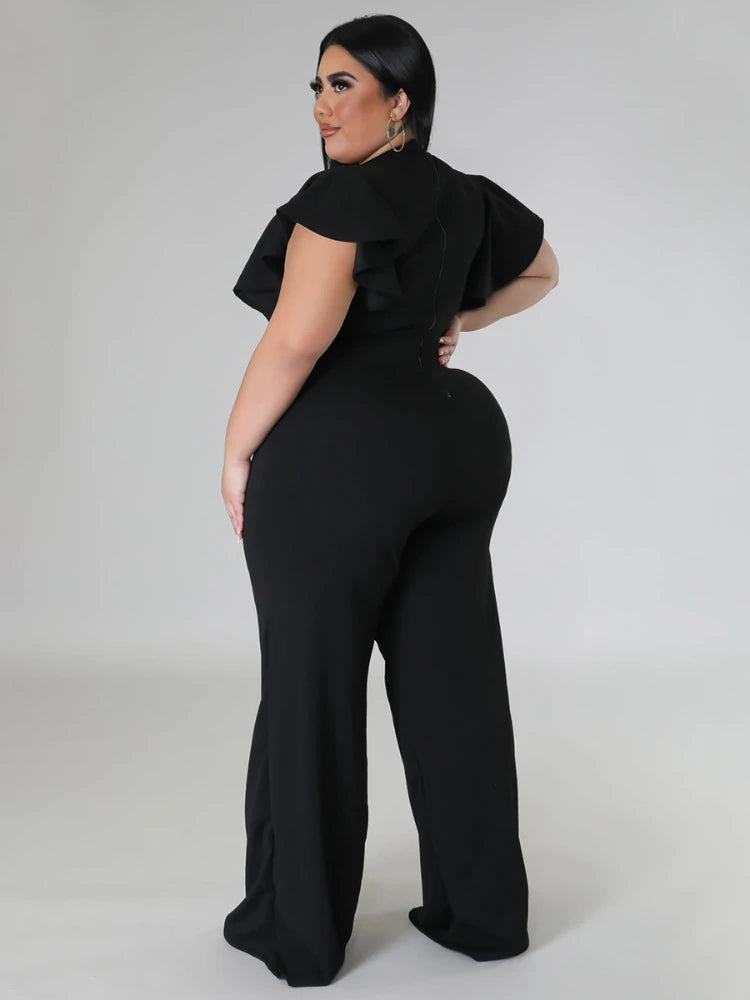 Plus Size Jumpsuits V Neck Short Ruffles High Waist Black White Package Hip Wide Leg Rompers Pants Overalls 4XL One Piece Outfit