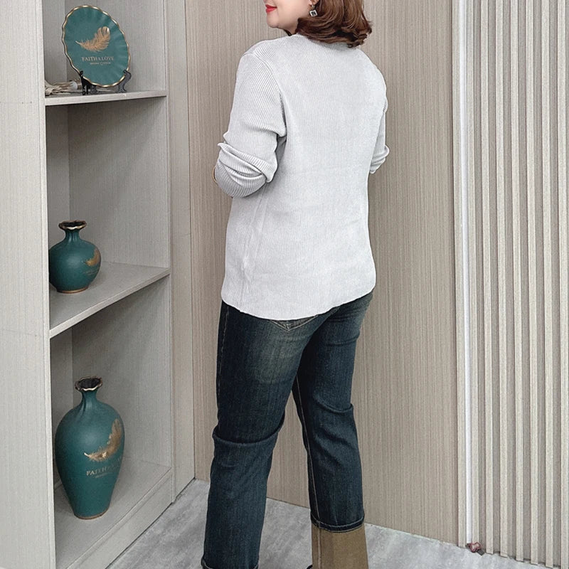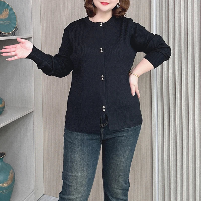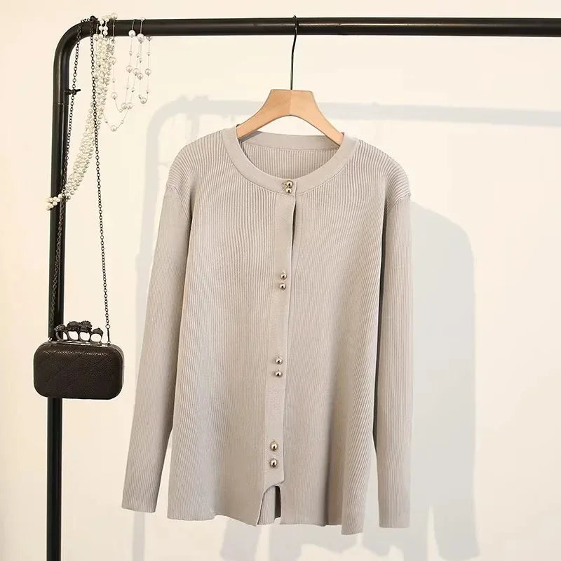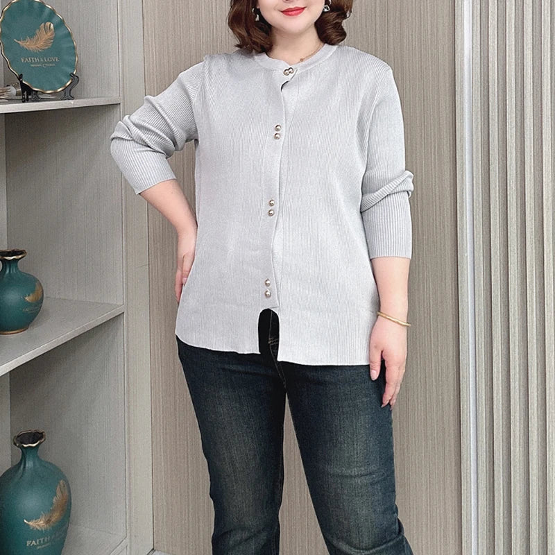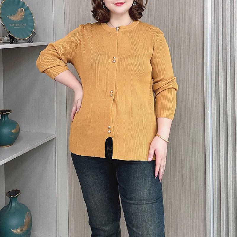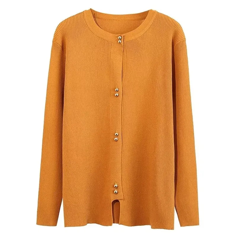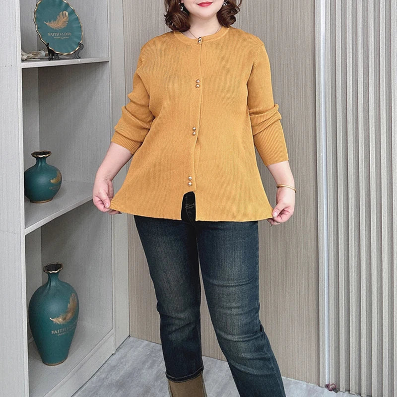 Plus Size Knit Cardigan Female Loose Autumn Winter New Jumpers Copper Buttons Long Sleeve Sweater 6688