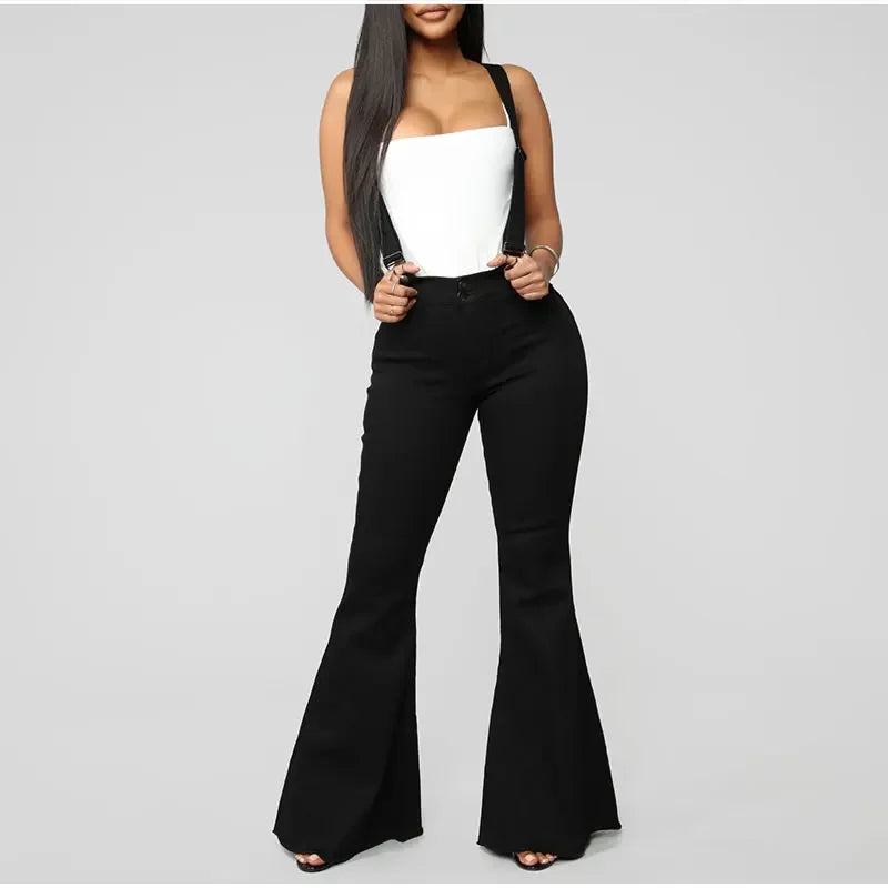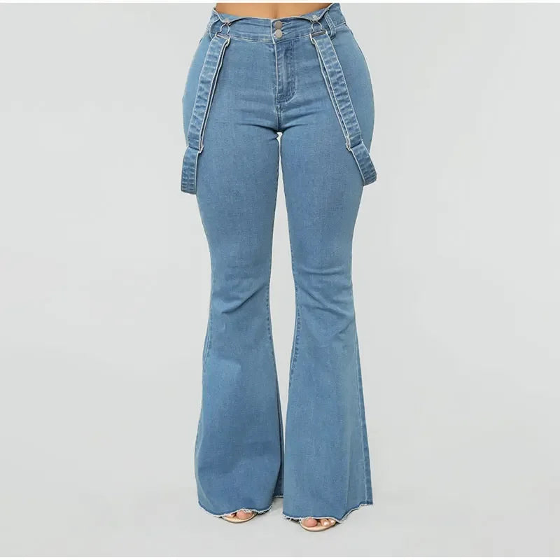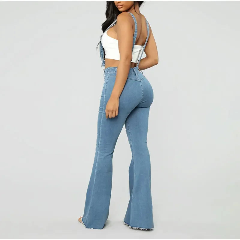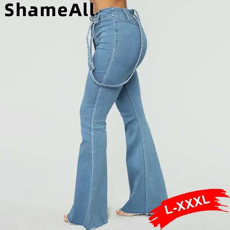 Plus Size Suspender Flare Jeans Jumpsuits 3XL Wide Leg Denim Overalls Vintage Blue Streetwear Bib Pant One Piece Bandage Outfits