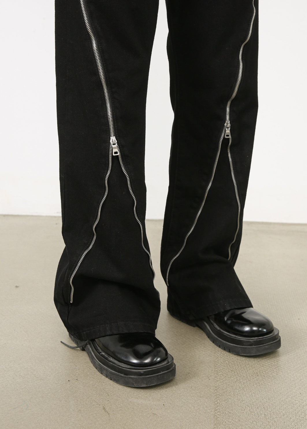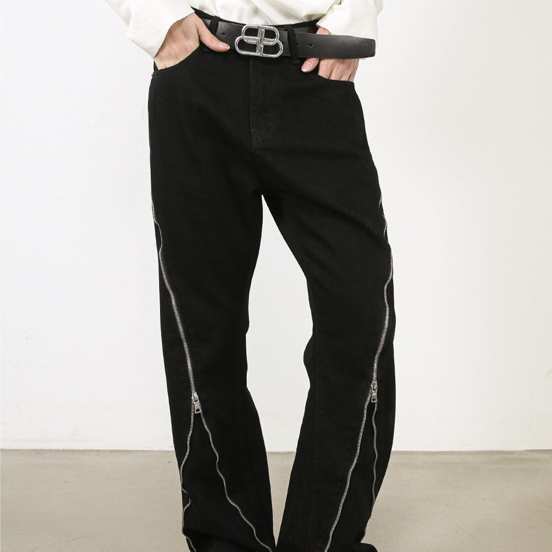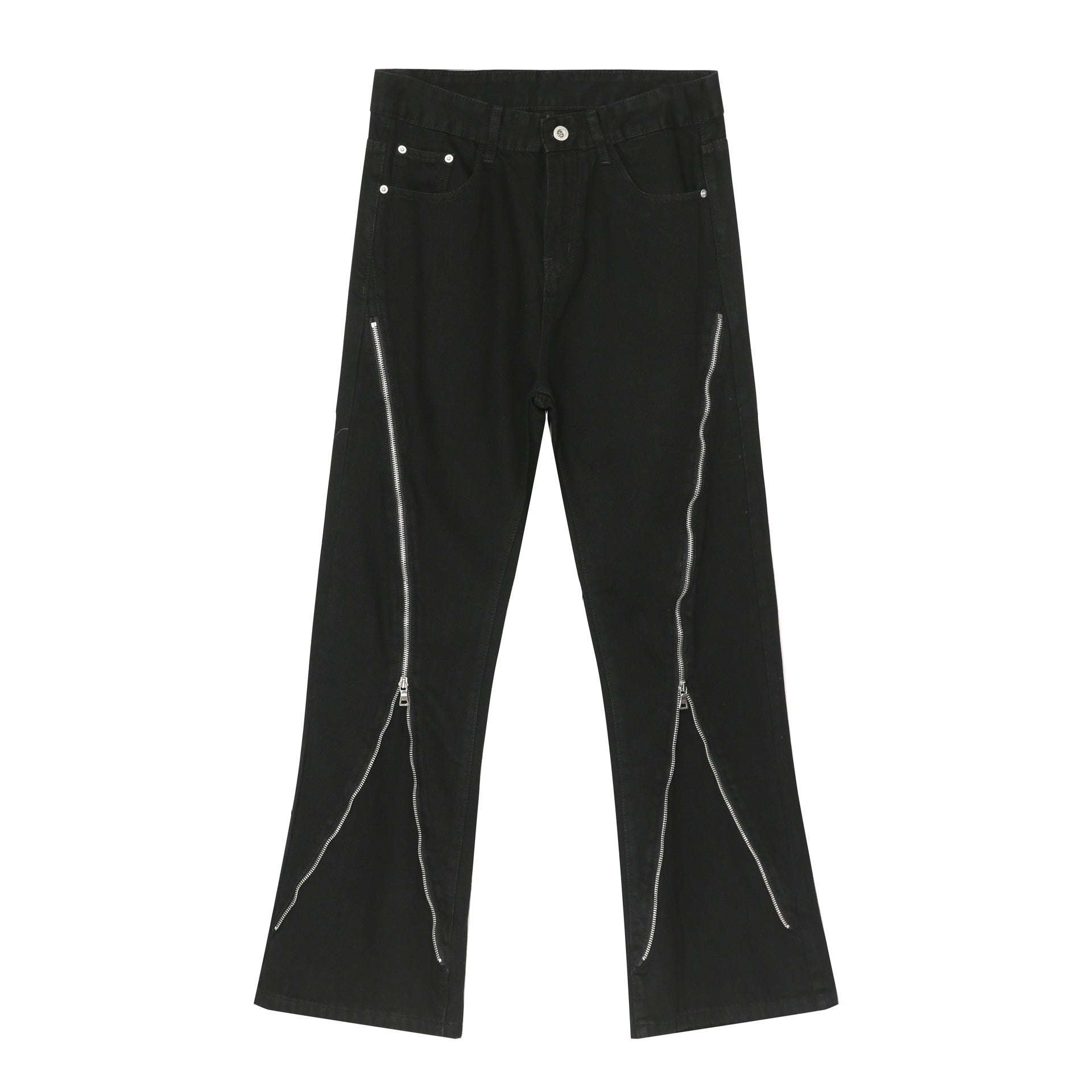 Street Dark Loose Slightly Flared Jeans Zipper Design Men's Pants