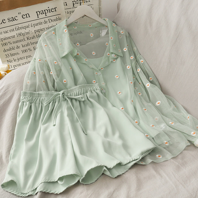 Summer Women Three Piece Sets Casual Linen Tops Shorts Ela