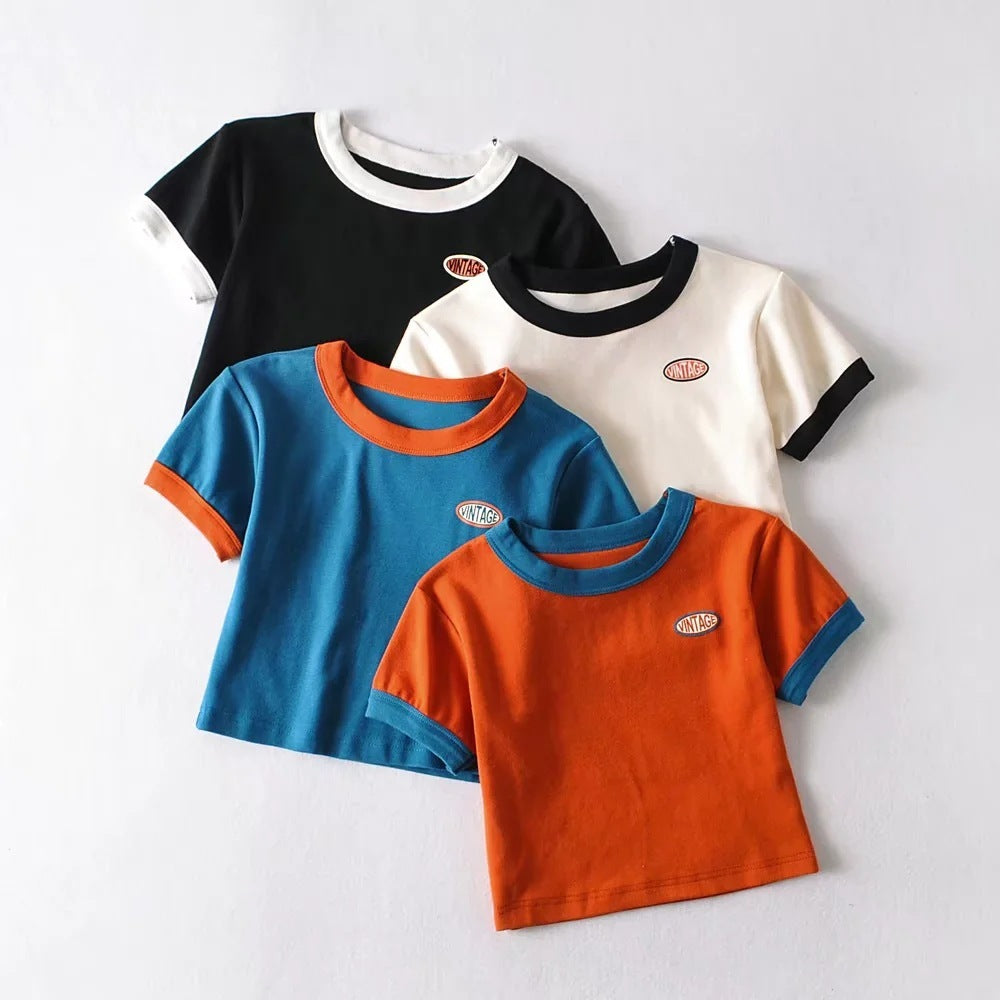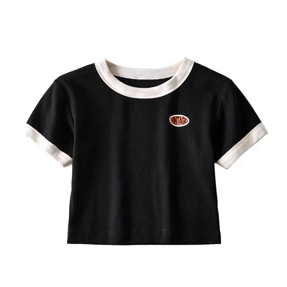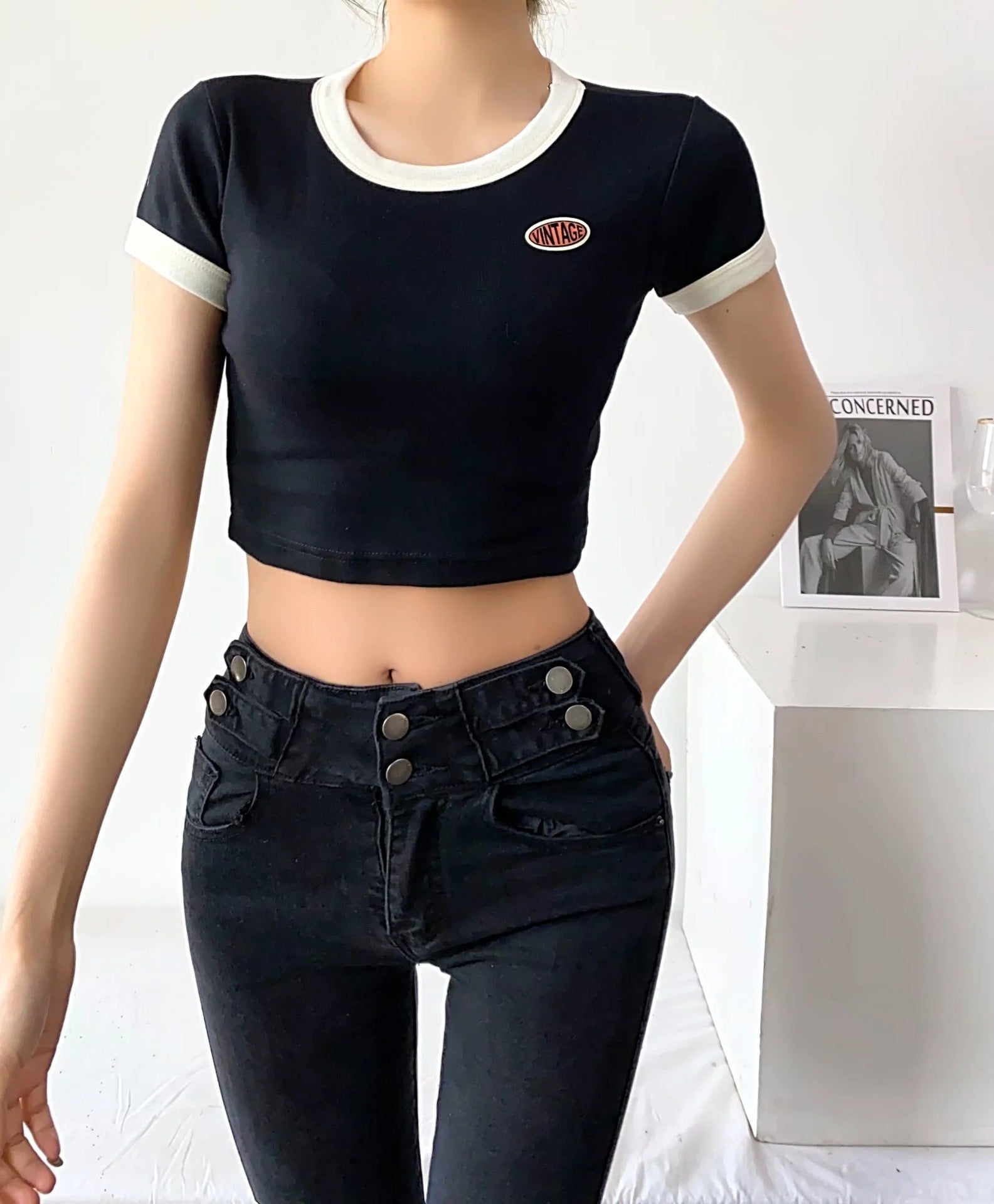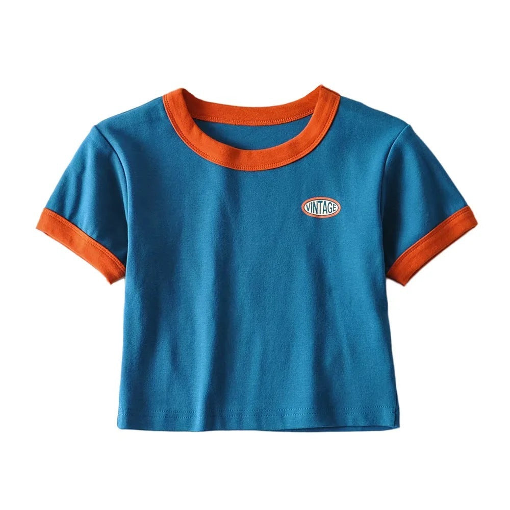 T-shirt In Contrast Color Women's Short High Waist Slim Top
