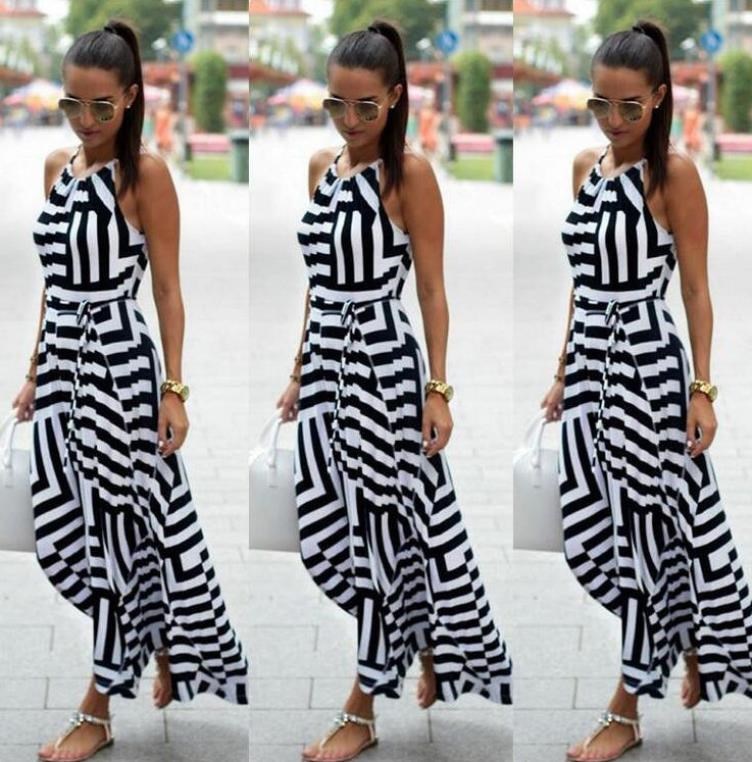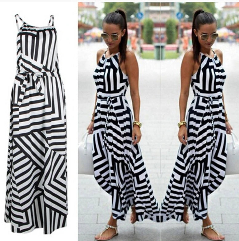 VALERIE - Zeer mooie en elegante maxi-zomerjurk in cool streepjesmotief