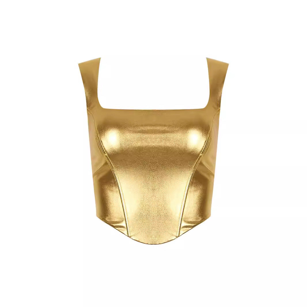 Women's Gold Spaghetti-strap Slim Fishbone Short Top